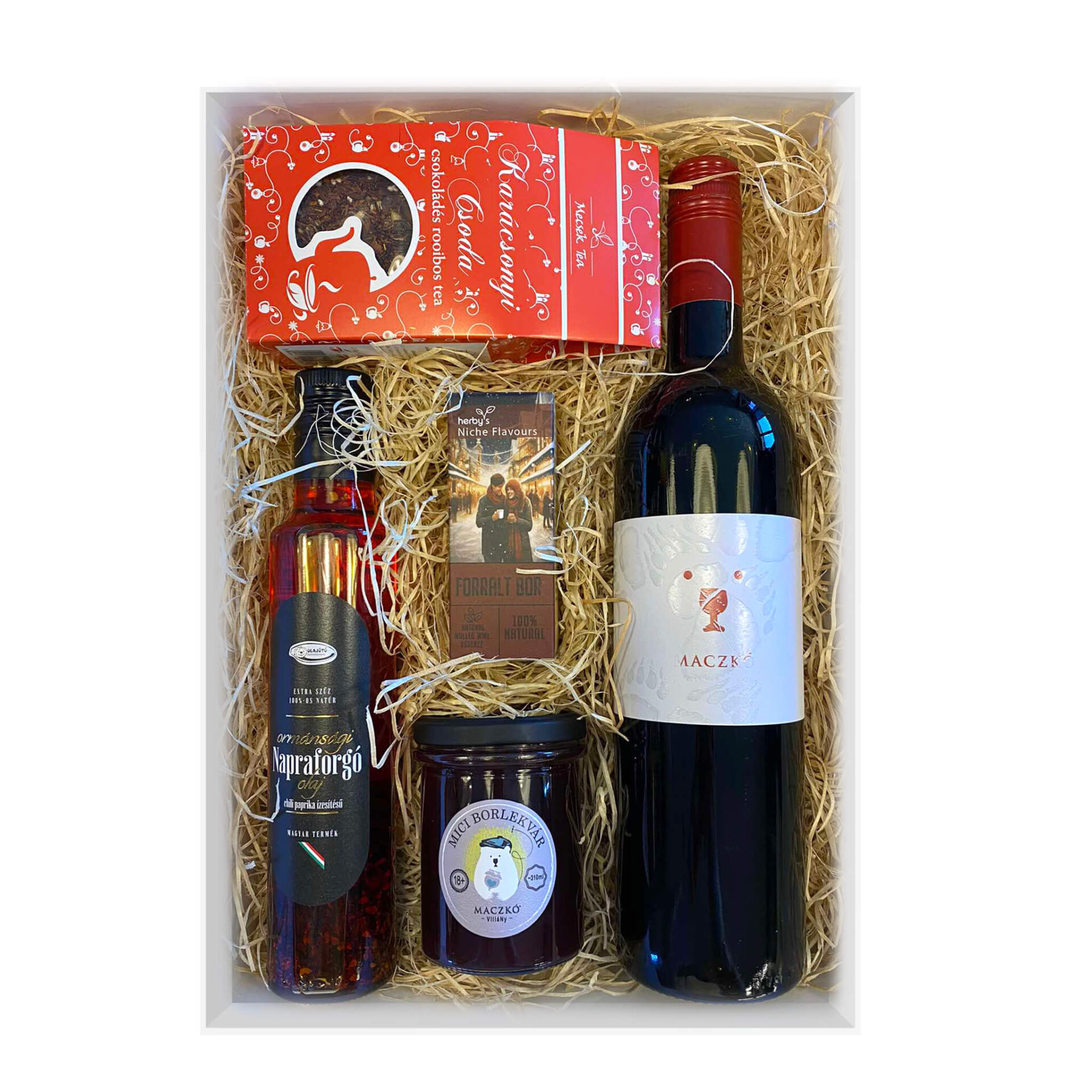 Mici borlekvár – 212 ml. Összetevők: Mici Cuvée(KHVH), cukor, citrom, vanília, csillagánizs, fahéj. Agaragarral sűrítve. Glutént és alkoholt tartalmazhat. Készítette: Maczkó Pincészet Kft. 7773 Villány, Baross G. u. 73.
