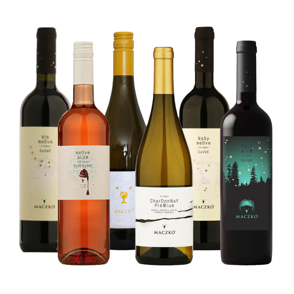 6 palack villányi bor 1 csomagban – fehérek, rozék, vörösek, több évjáratból, hogy mindenki megtalálja a kedvencét. Ajánljuk borrajongóknak, családi összejövetelekre vendégvárónak, de külön-külön kiváló kísérő lehet belőle egy-egy ajándék mellé is
